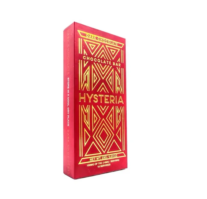 Experience the decadent allure of Hysteria's Dark Chocolate 100mg edibles, a tempting blend of premium cannabis-infused dark chocolate and exquisite flavor. Crafted with utmost care and precision, each piece delivers a precisely measured dose of 100mg THC, ensuring a consistent and enjoyable experience with every bite. Indulge in the rich, velvety texture of dark chocolate, harmoniously balanced with the euphoric effects of cannabis, and unlock a world of relaxation and bliss. Hysteria's Dark Chocolate 100mg edibles are the perfect choice for cannabis enthusiasts seeking a delectable and potent treat to elevate their moments of enjoyment.